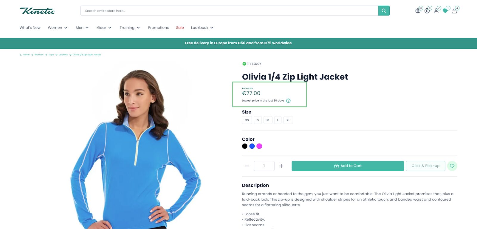 • For full transparency, the Baldwin Omnibus Module displays the lowest price history in a tooltip on the Product Detail Page. Customers can easily see the lowest price information without cluttering the page, providing clear and concise information about price reductions, as required by the Omnibus Directive.